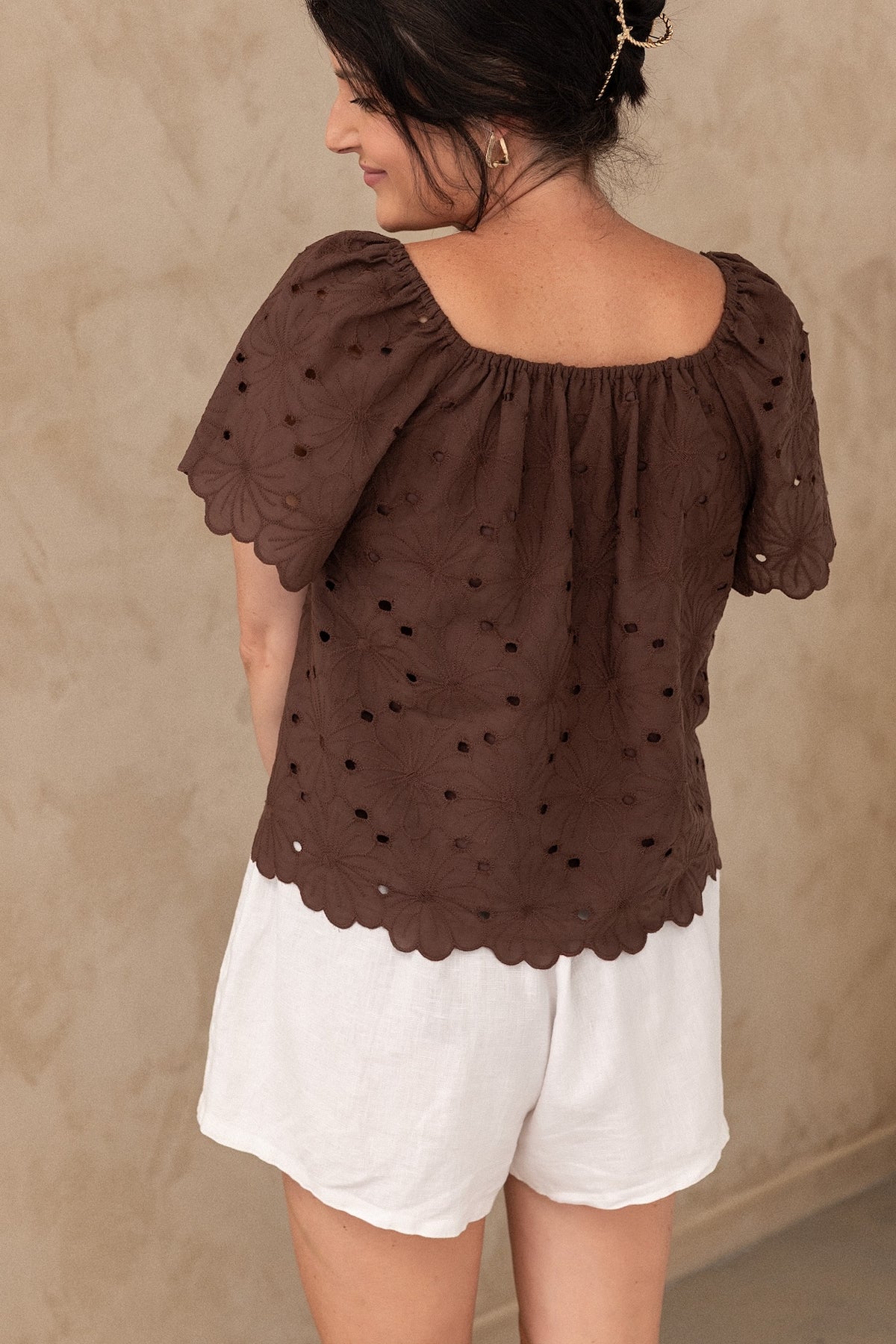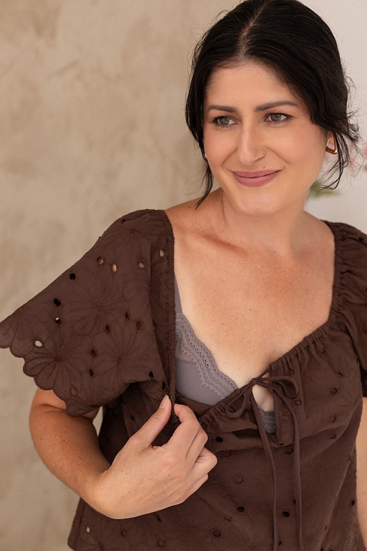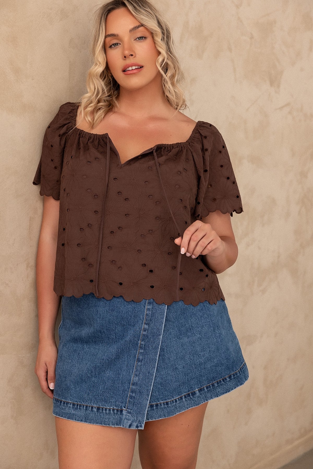 Not your average breastfeeding top. Shae is effortless luxury; a modern spin on a classic peasant blouse that pairs well with your favourite denim, linen, and anything in between The beauty is in the details of the broderie anglaise fabric, scalloped edges and dainty front tie, with simple pull-down feeding access.
