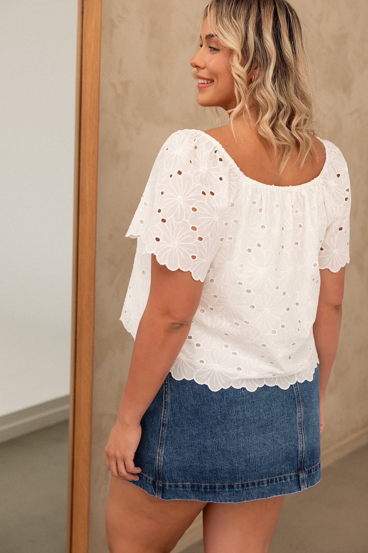 Not your average breastfeeding top. Shae is effortless luxury; a modern spin on a classic peasant blouse that pairs well with your favourite denim, linen, and anything in between. The beauty is in the details of the broderie anglaise fabric, scalloped edges and dainty front tie, with simple pull-down feeding access.