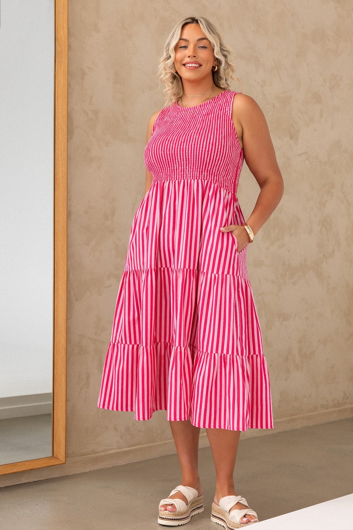 The Sophie Dress is practically begging for a spot in your wardrobe! Featuring a classic silhouette with a comfy shirred top and flowy skirt, Sophie is as practical as she is stylish with side zips and (of course) pockets!